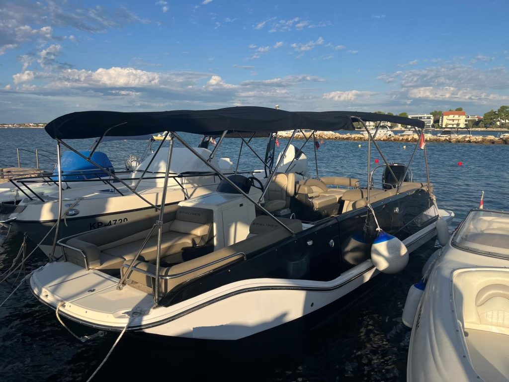 Extra felszereltség: Rozsdamentes csomag, kompresszor, vízisi oszlop, első bimini, takaró ponyva, világító csomag, vízalatti világítás, fedélzeti szőnyeg, orr asztal, vízrendszer, orr létra, luxus vez ülés!!!! Rozsdamentes kapaszkodók, pohártartók, dörzsperem és tankbeöntő, GPS + halradar, algavédelem.