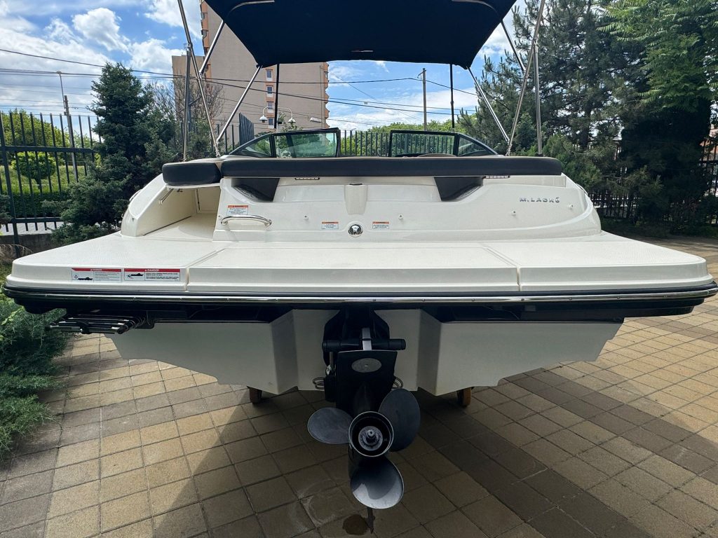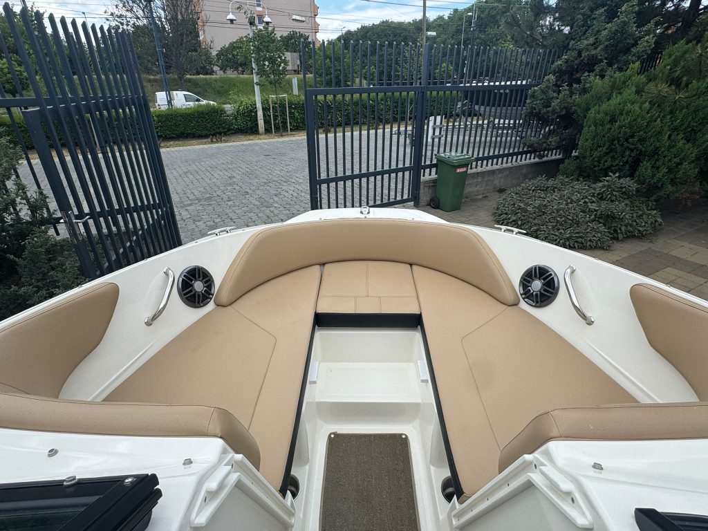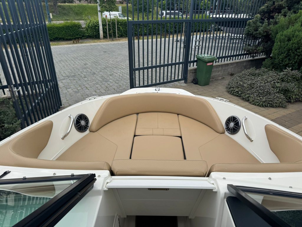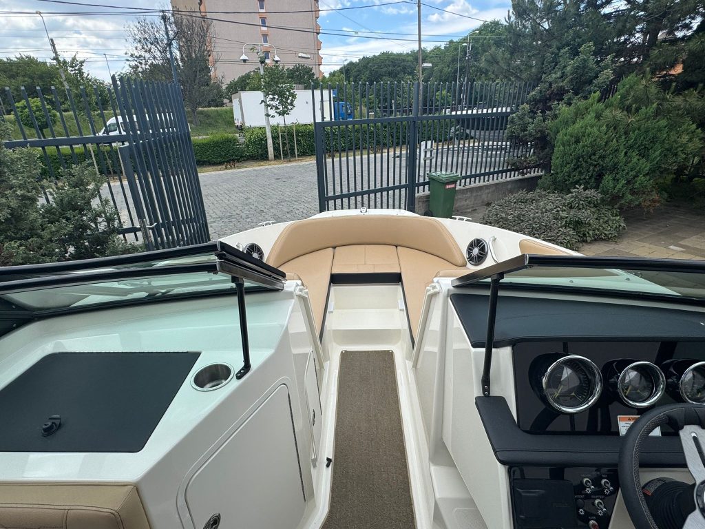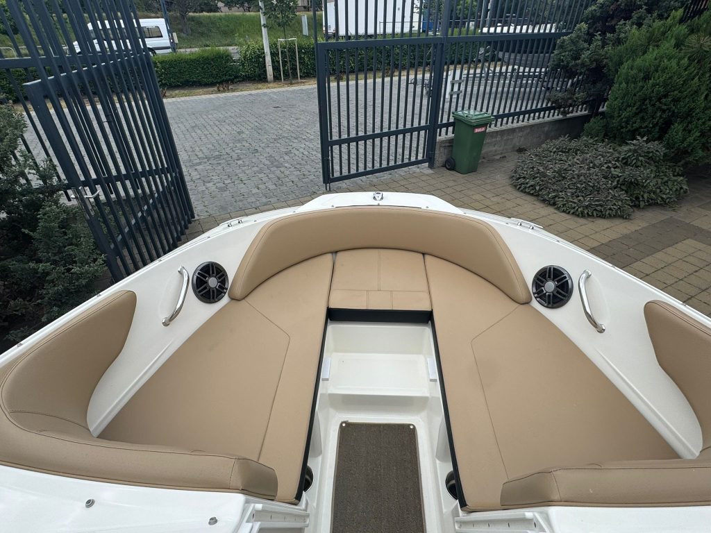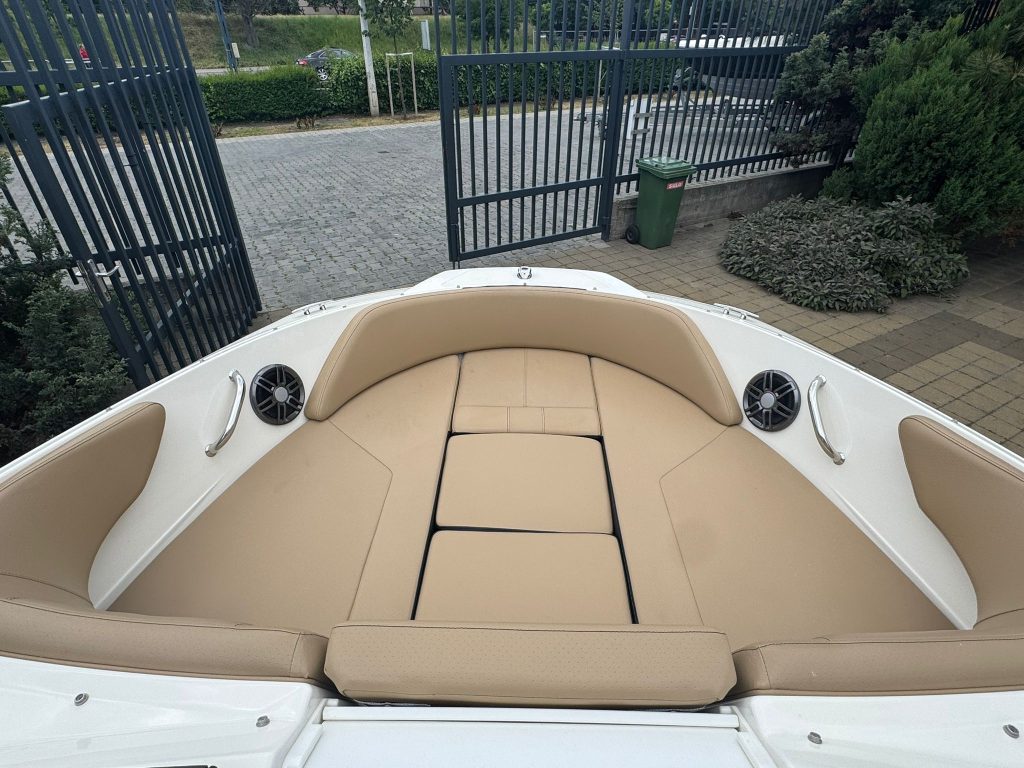 Extra felszereltségek: Sötétkék hajótest, Kapitány csomag, Sea Deck barna fürdőplatform és fedélzeti borítás, Bimini tető tokkal, orrkitöltő párna háttámlával, orr és fedélzeti takaróponyva, fedélzeti asztal teak, átjárható hátsó napozó.