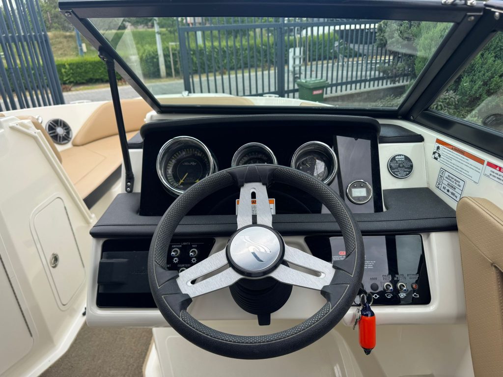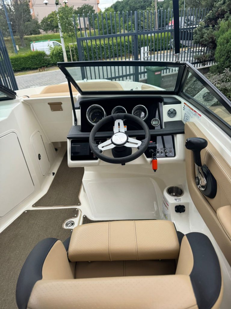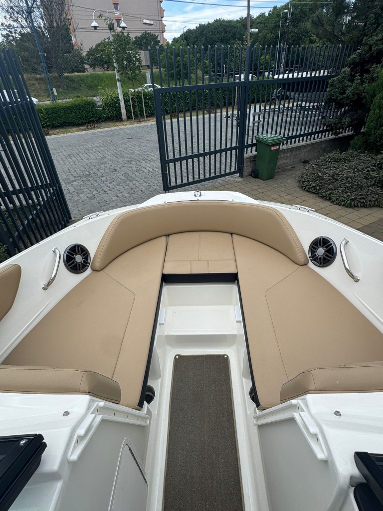 Alapfelszereltség: sportülés elrendezés, hátsó napozóval, szervokormány, teljes műszerzetség, navigációs fények, wakeboard tároló rekesz, dupla fenékvíz szivattyú, vízisí húzószem, Sony 4 hangszórós hifi, integrált fürdőplatform létrával.